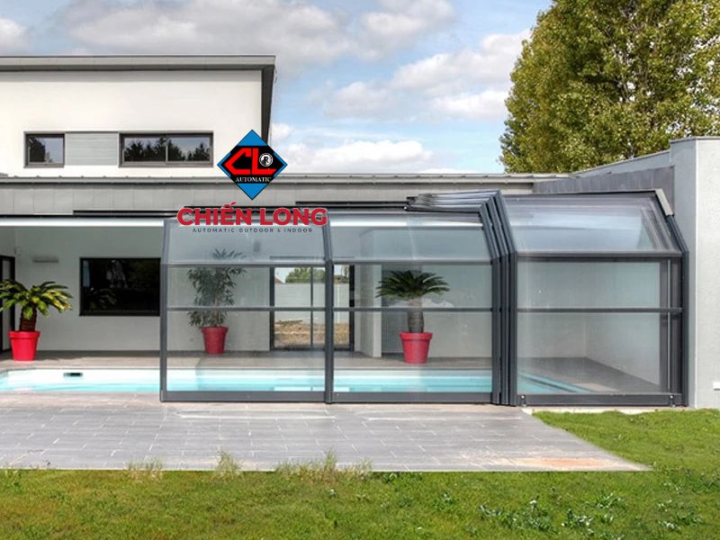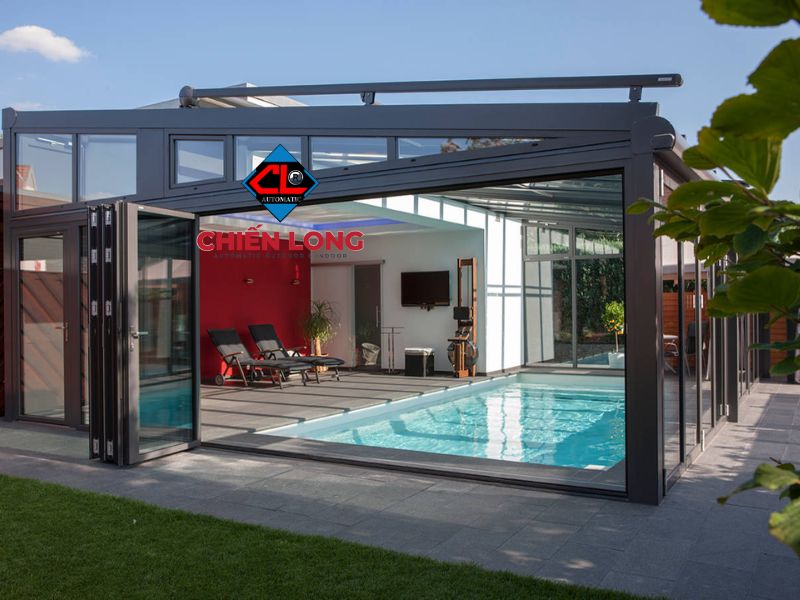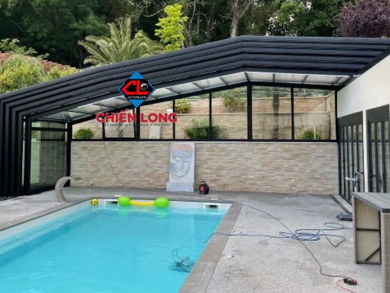 Mái che hồ bơi tự động hệ xếp lớp - thêm tiện nghi cho không gian sống