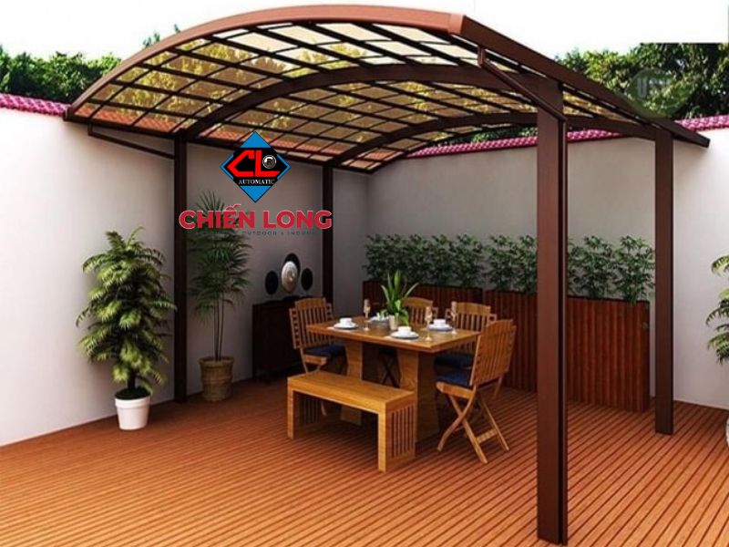 Một trong những ưu điểm của tấm polycarbonate chính là khả năng uốn cong. Bạn có thể thiết kế mái che dạng vòm để tạo ra một không gian ấn tượng và khác biệt. Mái vòm còn giúp tối đa hóa ánh sáng tự nhiên và tạo cảm giác rộng rãi hơn.