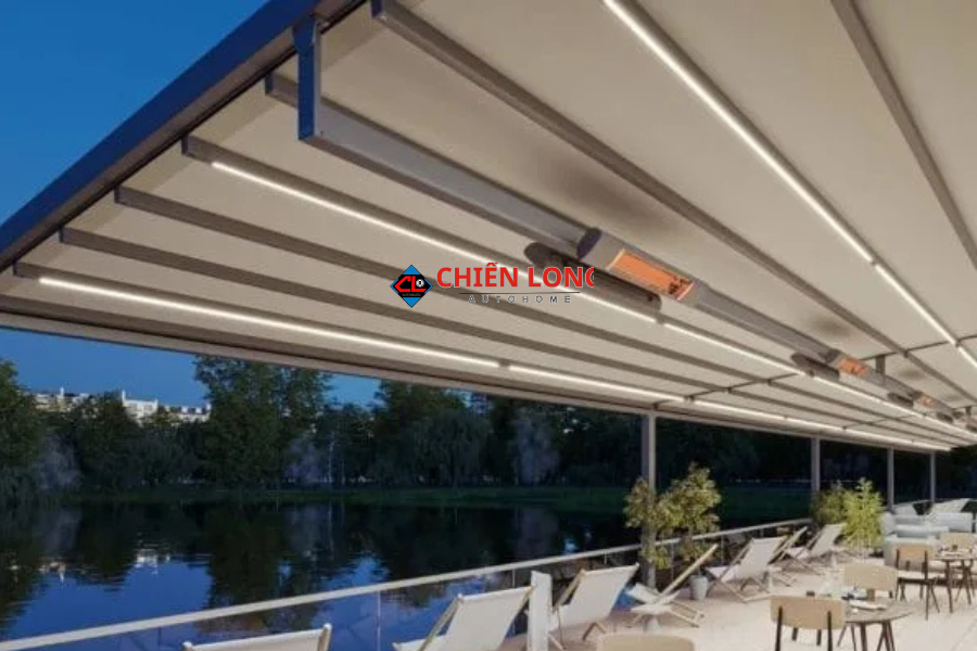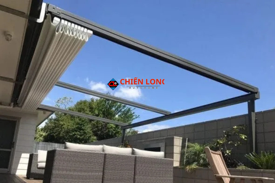 Mái xếp che Pergola dùng vải PVC chống nắng, chông cháy - Giải pháp thông minh ngoài trời