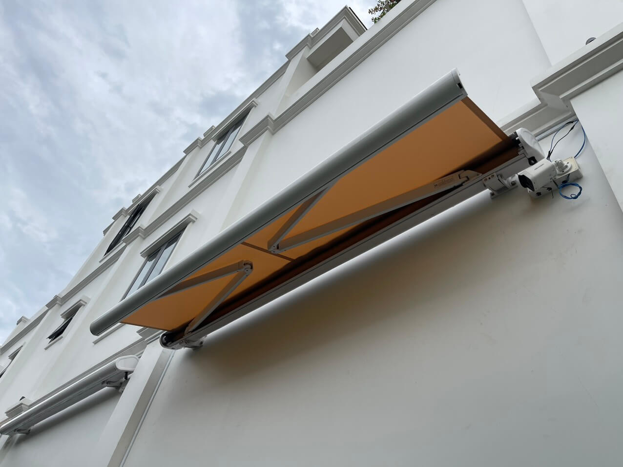 Ngoài ra, motor điều khiển hệ thống mái hiên cũng đạt chuẩn quốc tế với khả năng chống ẩm, hơi nước và bụi bẩn tốt. Khi cần kéo vào hay mở ra, quý khách chỉ cần một nút bấm điều khiển từ xa tiện lợi, an toàn và nhanh chóng,