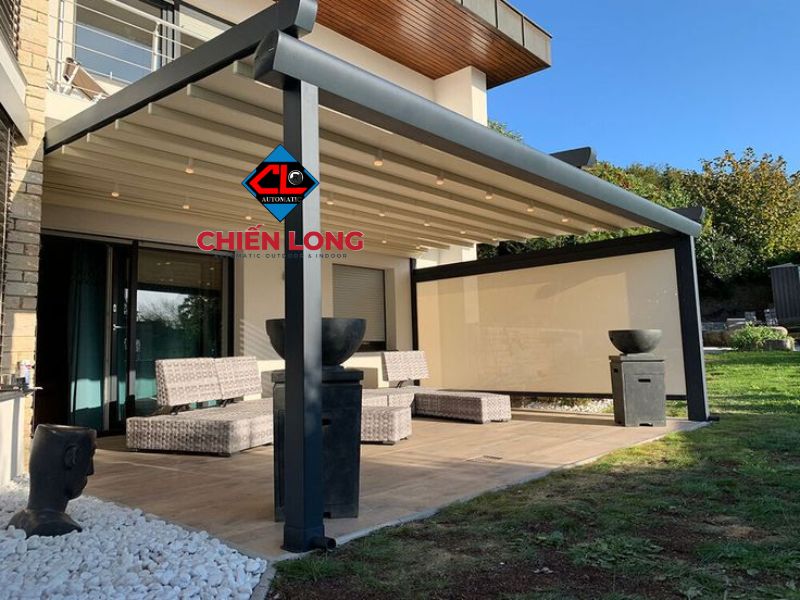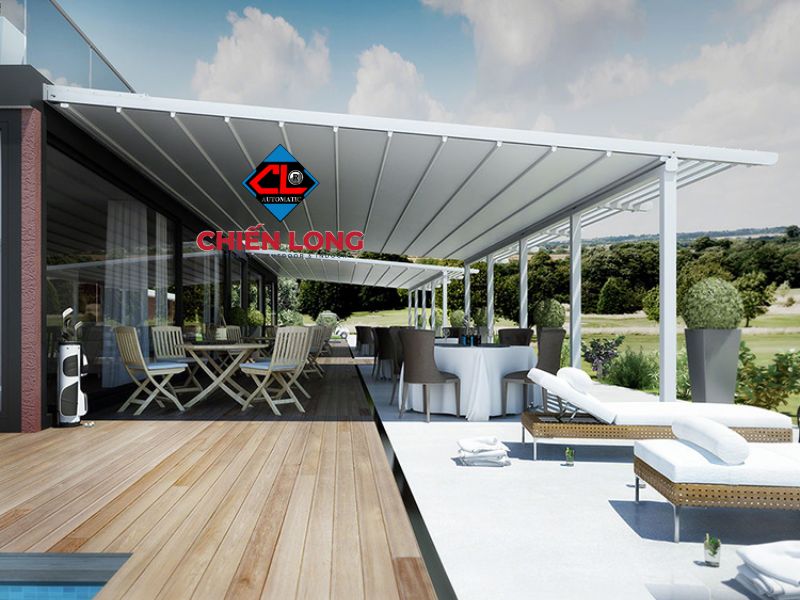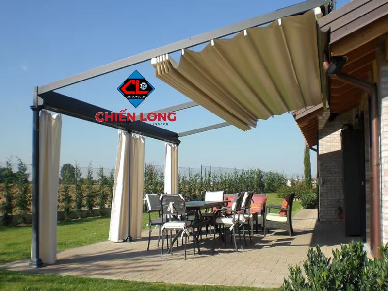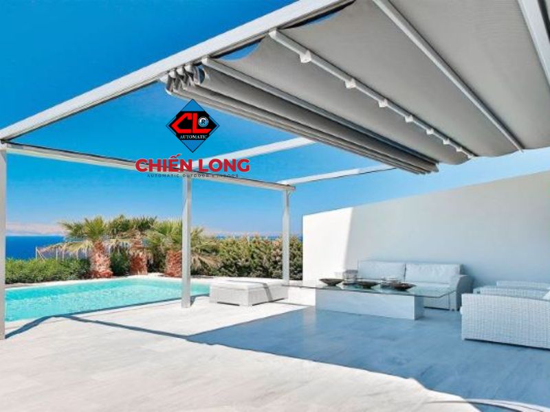 Chiến Long – Chuyên thi công mái hiên vải 3D chống nắng 99% hệ xếp ly PVC Pergola tự động