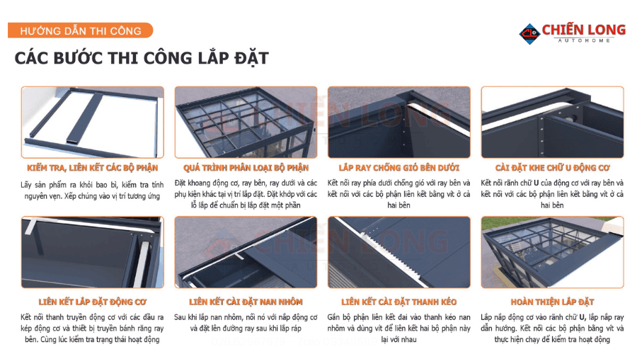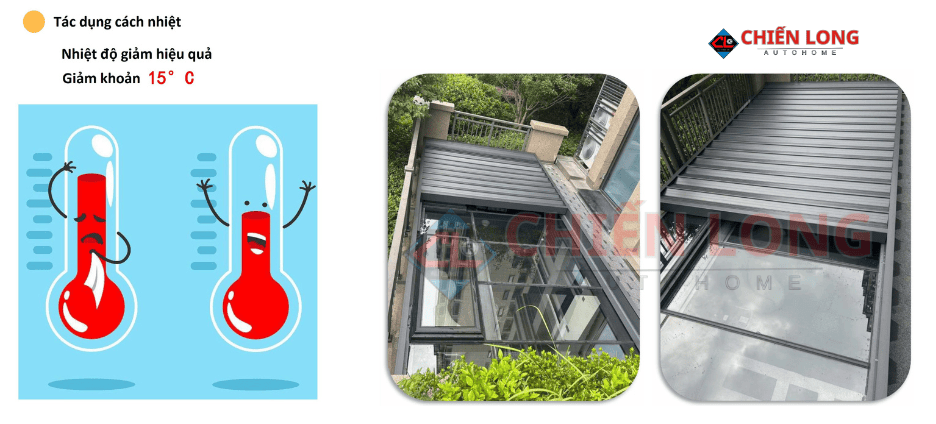 | Mái nhôm tự động tiêu chuẩn | 3.650.000 – 3.950.000 | Khung + lá nhôm + remote |