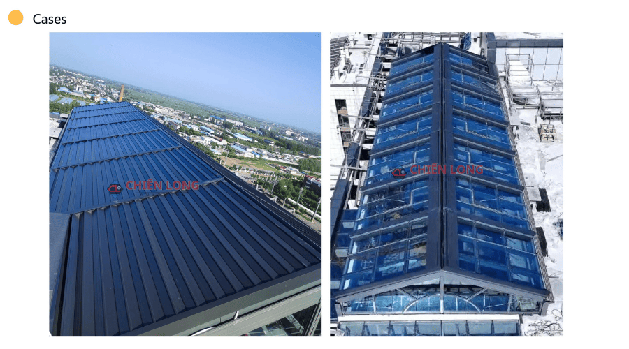 ⭐ 5. Ứng dụng thực tế của mái nhôm che nắng trên mái kính