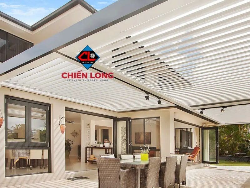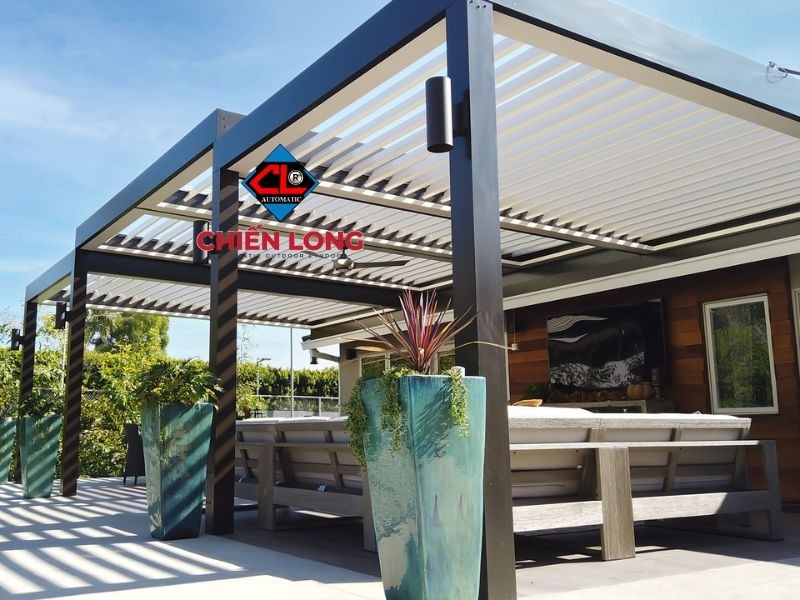Sản phẩm mái xếp Pergola Aluminum tại Chiến Long được thiết kế thông minh khi có thể được điều khiển đóng mở tự động thông qua thiết bị điều khiển từ xa hoặc thao tác lệnh trên điện thoại.