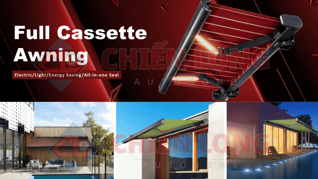 - Mái hiên tự động: Kết cấu tay đòn, linh hoạt nhưng không phù hợp gió quá mạnh trong thời gian dài