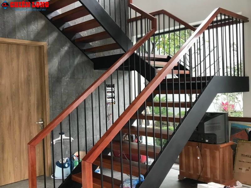 Chiến Long đơn vị thi công mẫu cầu thang ốp gỗ thiết kế hiện đại CT 1010