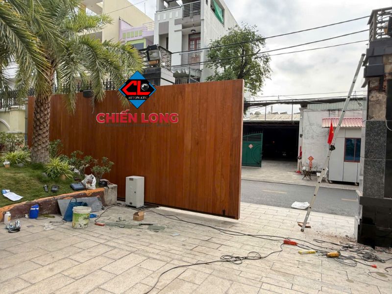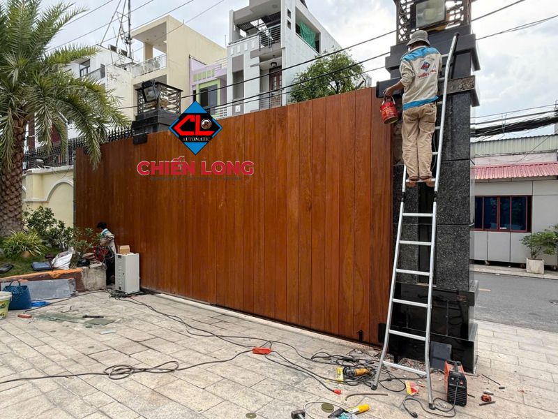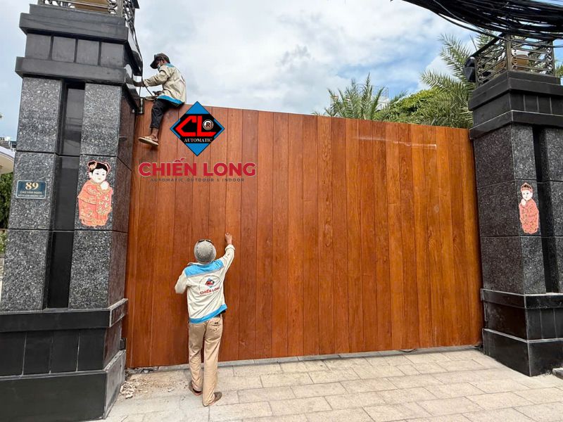 Ngoài mẫu cổng này, Chiến Long còn cung cấp và thi công nhiều mẫu cổng khác như cổng lùa tự động không ray dài 14m, nặng 2,5 tấn phù hợp cho các công trình có lối vào rộng hơn. Đặc biệt, Chiến Long còn nhận thi công ốp cổng theo yêu cầu thẩm mỹ của khách hàng, ví dụ như bộ cổng lùa 3,6 tấn dài 8,6m được ốp gỗ tự nhiên Lim sang trọng, giúp nâng tầm giá trị công trình.