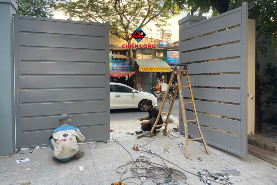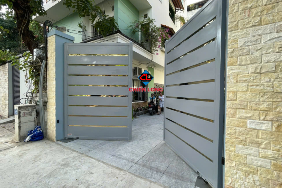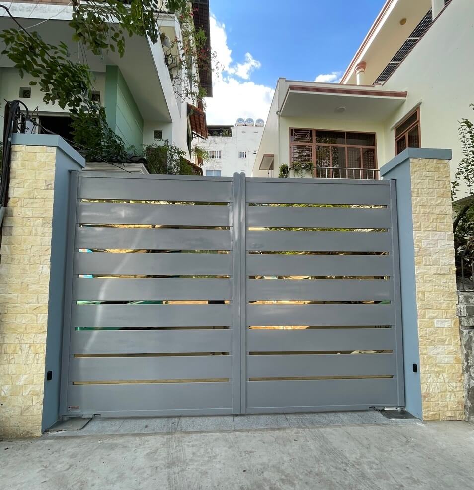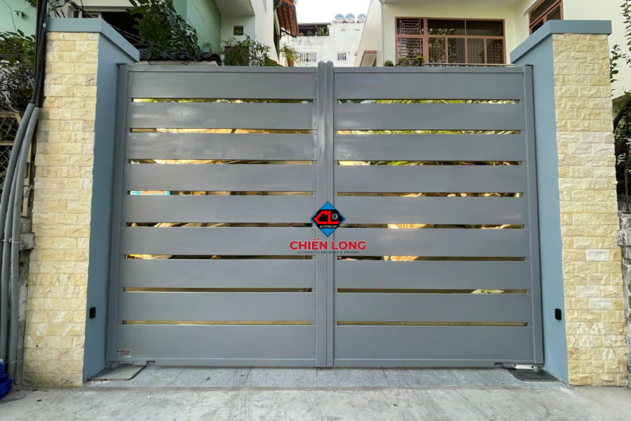 Xưởng cơ khí Chiến Long xin gửi đến khách hàng mẫu cổng sắt 2 cánh thiết kế hiện đại sang trọng đẳng cấp, Bộ cửa cổng thiết kế hiệu ứng 3D những sọc kẻ ngang tạo ra điểm nhất cho bộ cổng sang trọng và hiện đại, Mẫu cổng sắt 2 cánh phù hợp cho các ngôi biệt thự có thiết kế hiện đại, Khách hàng liên hệ số zalo bên dưới để được tư vấn thêm.