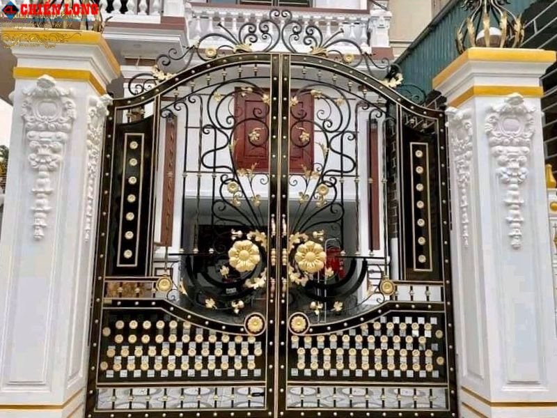Mẫu cổng sắt mỹ thuật 2 cánh thiết kế tân cổ điển MT-004