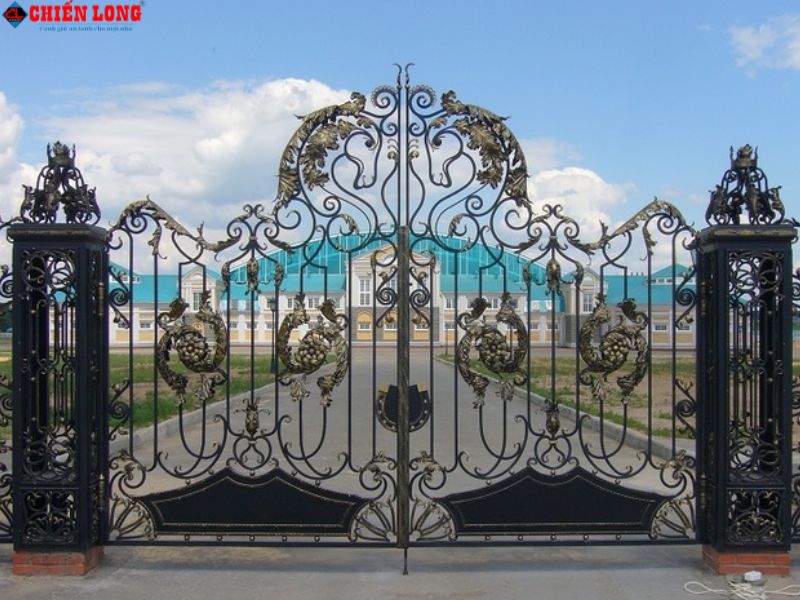 Mẫu cổng sắt mỹ thuật 2 cánh thiết kế tân cổ điển MT-011
