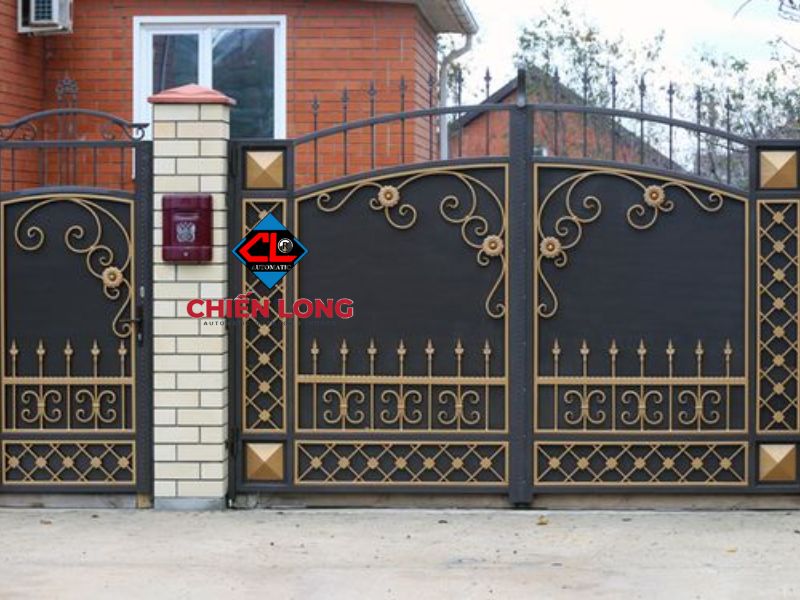 Chiến Long đơn vị thi công mẫu cổng sắt mỹ thuật đẹp tân cổ điển 2 cánh MT-012