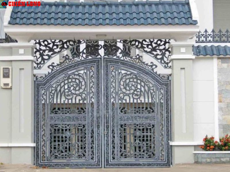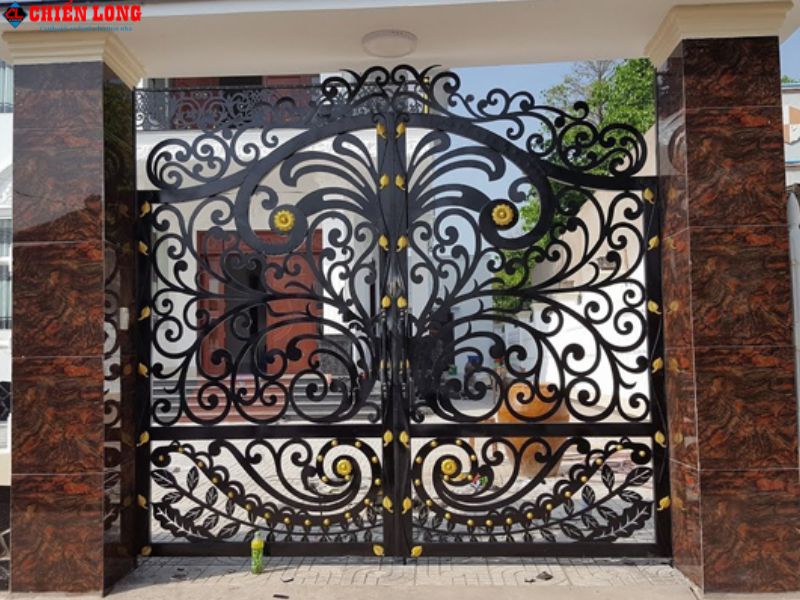 Chiến Long địa chỉ thi công mẫu cửa cổng sắt mỹ thuật tân cổ điển 2 cánh MT-021