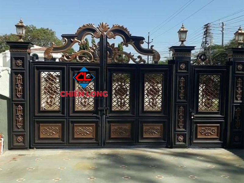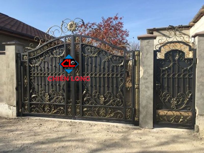 Chiến Long - đơn vị thi công mẫu cổng sắt mỹ thuật đẹp tân cổ điển 2 cánh MT-002