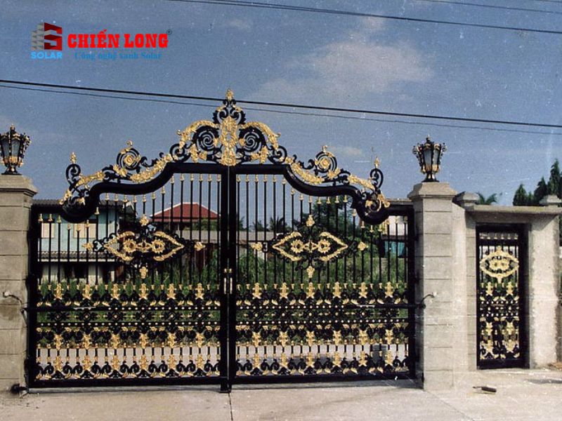 - Cổng được sơn đen với các họa tiết sơn nhũ vàng tăng tính quyền lực cho công trình.