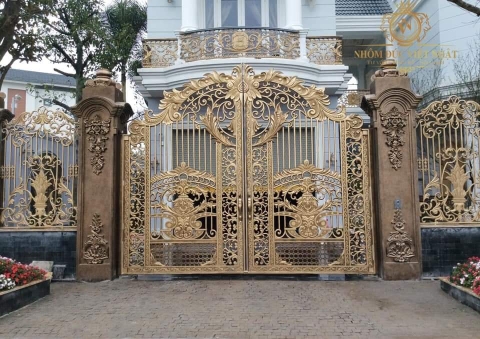 Mẫu cổng nhôm đúc 2 cánh phúc lộc đẹp mã số CL24221