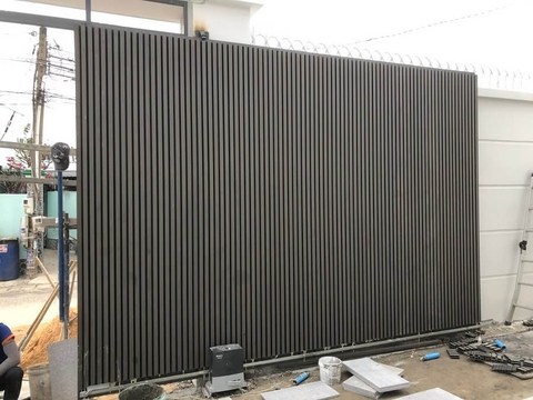 Cửa cổng ốp nhựa giả gỗ ngoài trời