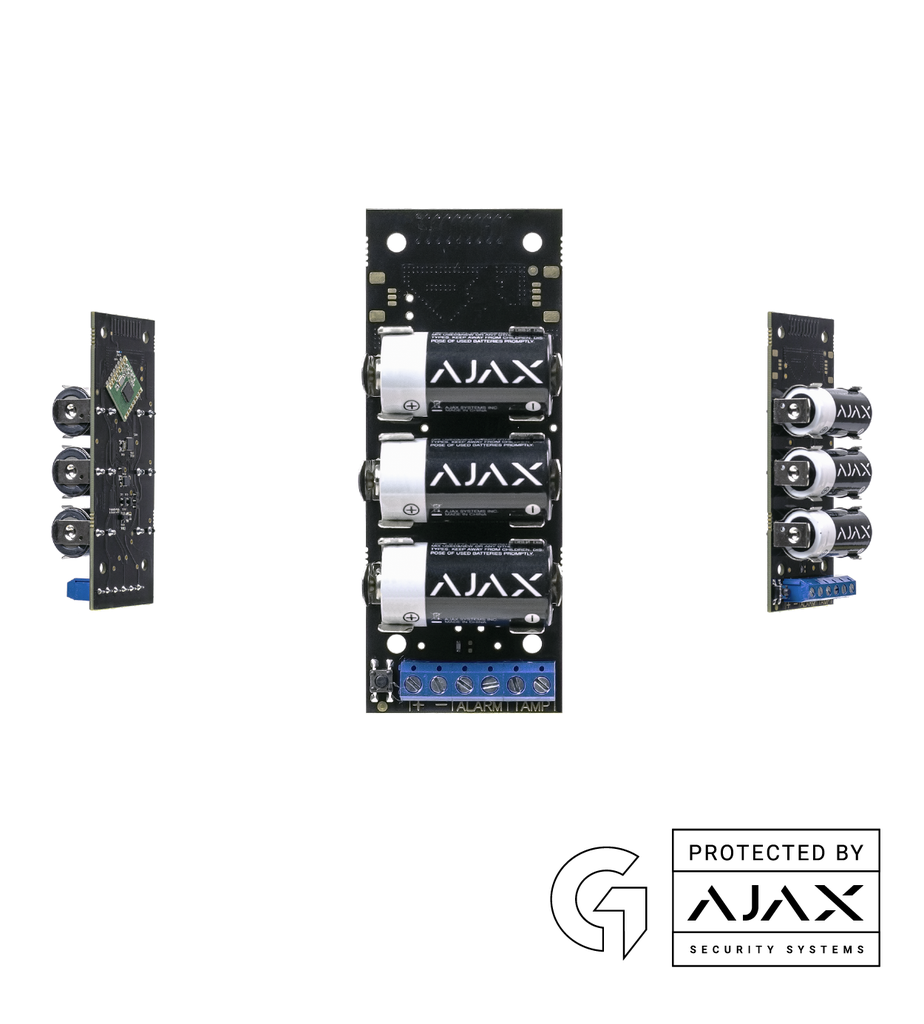 Modun không dây giúp kết nối các thiết bị: cảm ứng chuyển động ngoài trời, hàng rào hồng ngoại, cảm ứng mực nước và cảm ứng khí gas, rờ-le nhiệt và các thiết bị có đầu ra kết nối dây khác vào hệ thống an ninh Ajax.