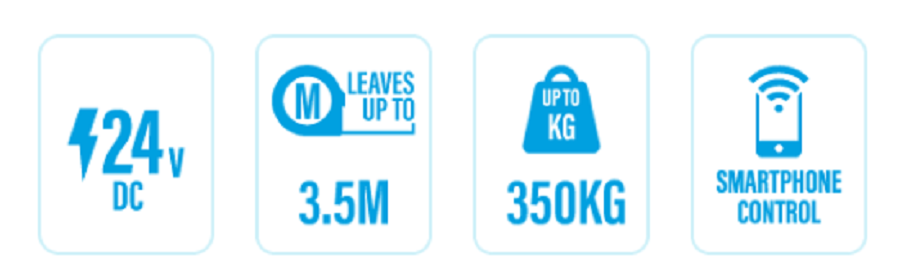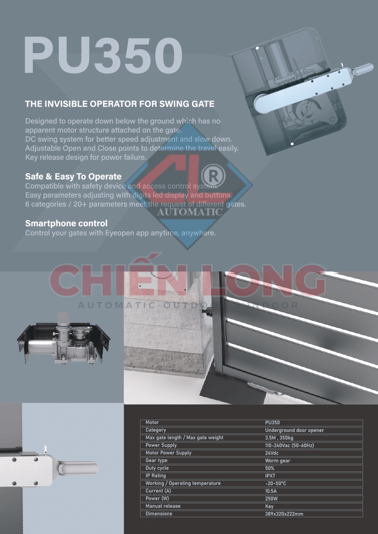 Motor Powertech PU350 hội tụ tất cả Kiểm soát cổng của bạn thông qua điện thoại thông minh của bạn mọi lúc, mọi nơi. Tương thích với ứng dụng Eyeopen