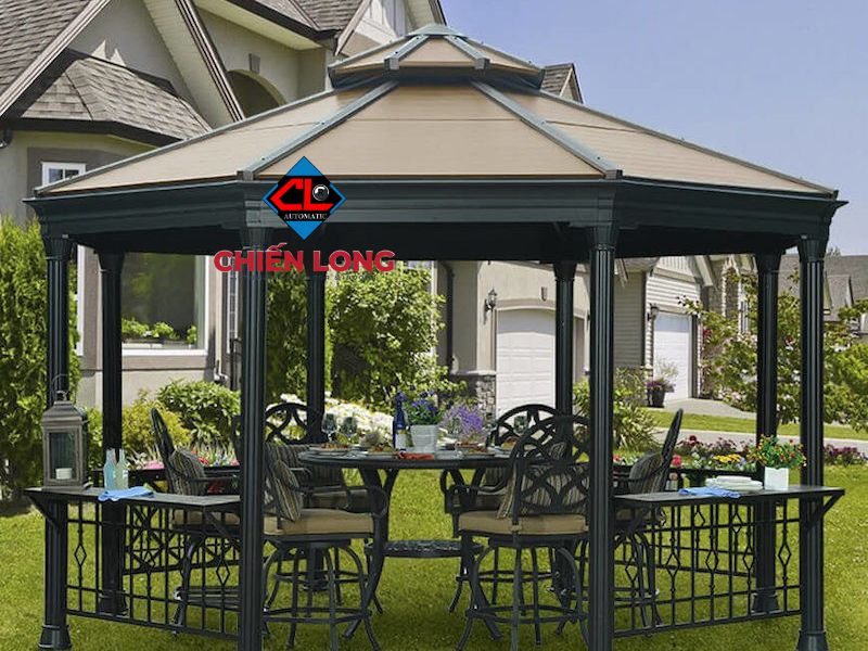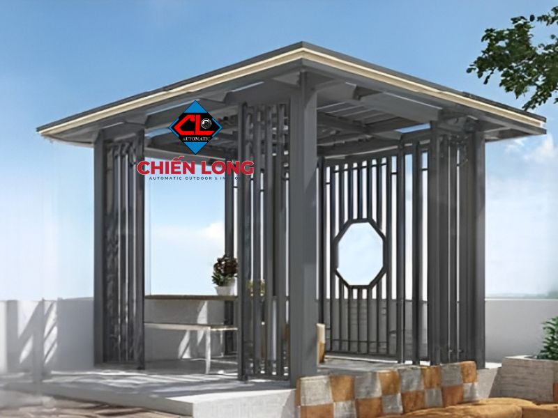 Nhà chòi khung sắt che mưa mang đến sự linh hoạt tuyệt vời trong việc lựa chọn vật liệu che chắn. Gia chủ có thể tùy chọn mái tôn cách nhiệt để chống nóng hiệu quả trong những ngày hè oi bức, hoặc sử dụng mái kính cường lực để tận dụng ánh sáng tự nhiên và tạo không gian thoáng đãng.