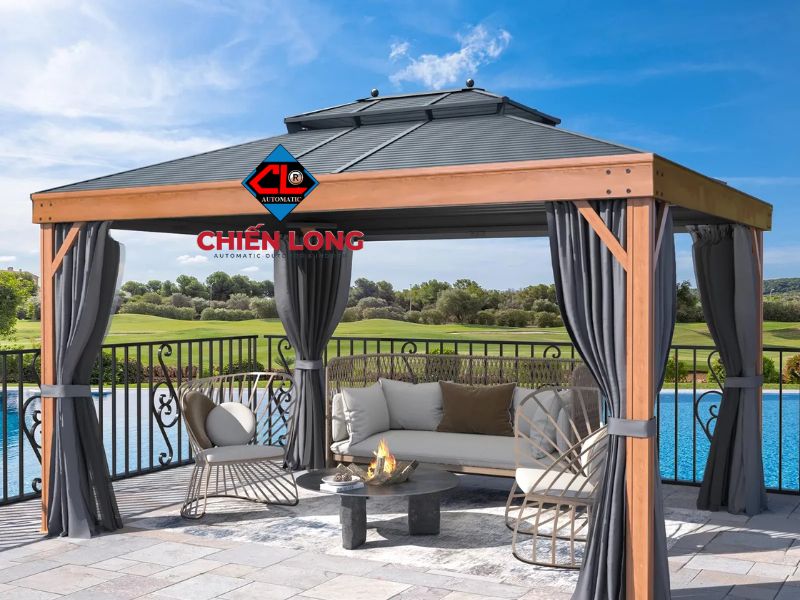 Bên cạnh đó, bạn hoàn toàn có thể tích hợp thêm các giải pháp che chắn di động như rèm cuốn, vách ngăn lùa, hoặc bạt che tự động. Những giải pháp này giúp gia chủ dễ dàng điều chỉnh mức độ che phủ, tạo ra không gian lý tưởng để thư giãn, làm việc, hoặc tổ chức những buổi tiệc ngoài trời đáng nhớ, bất kể thời tiết thay đổi như thế nào.