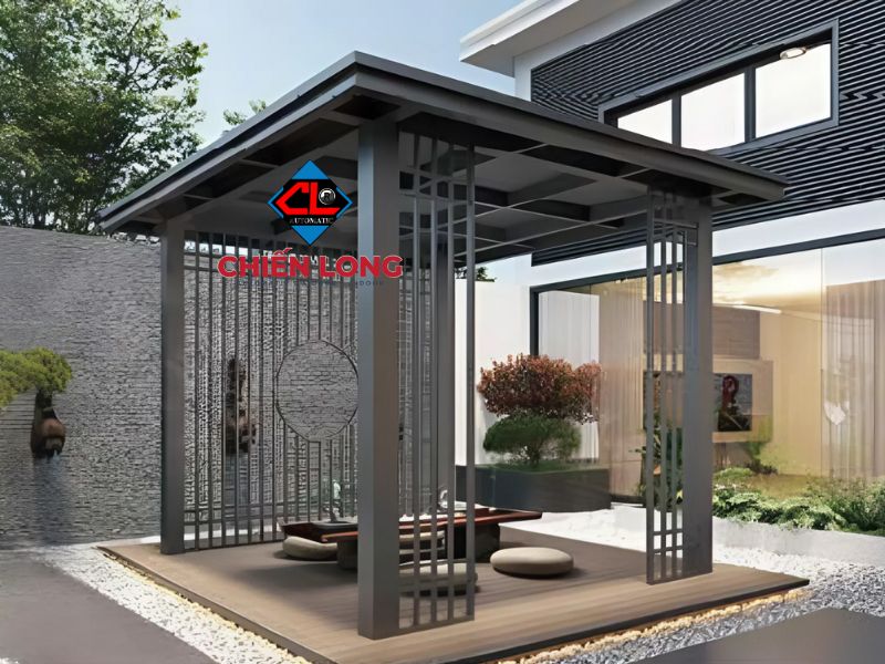 Nhà chòi trần lam nhựa giả gỗ & rèm zipper: đầu tư thông minh cho không gian riêng ngoài trời