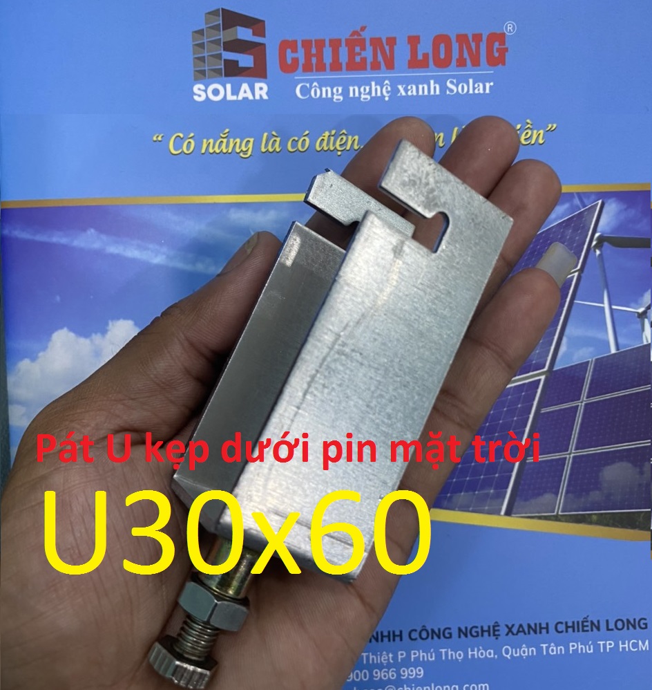 Pát chữ U 30x60 kẹp dưới pin mặt trời Bulong+ tán Innox 305