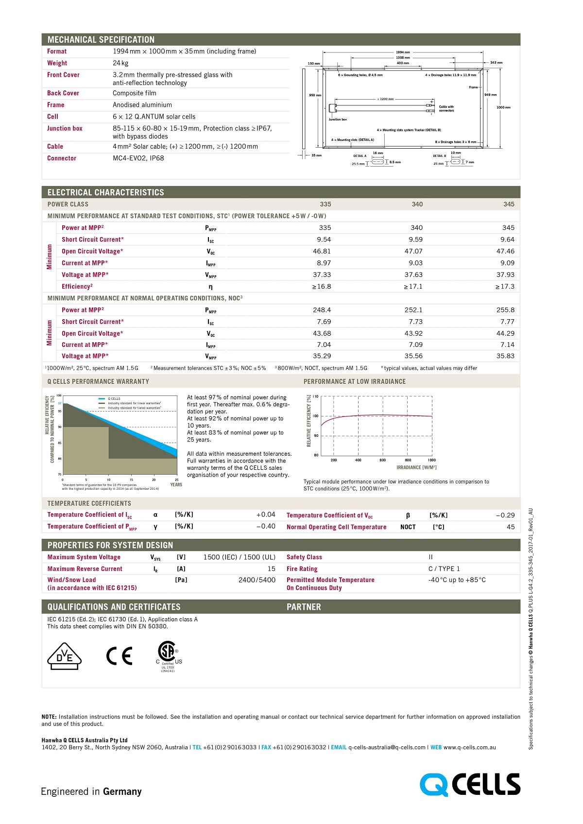 Các thông số kỹ thuật của tấm pin Hanwha Qcells 345