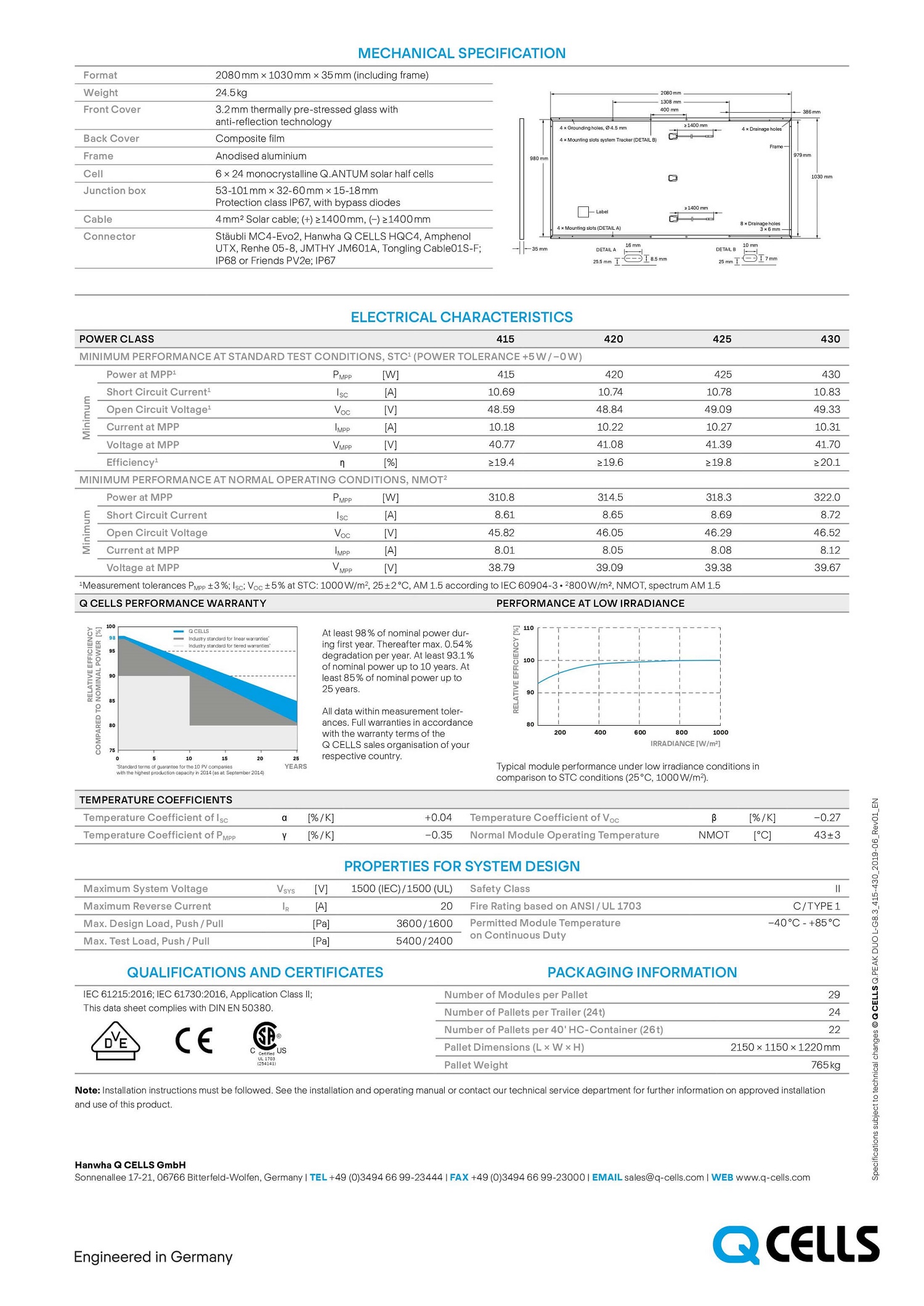 Thông tin về sản phẩm QCells Mono Halcell Qcells 425wp