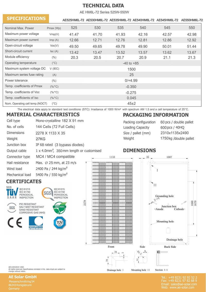 Tấm pin AE Solar 550Wp | AE550HM6L-72 Mono Half Cell của thương hiệu Đức AE Solar có gì đặc sắc?