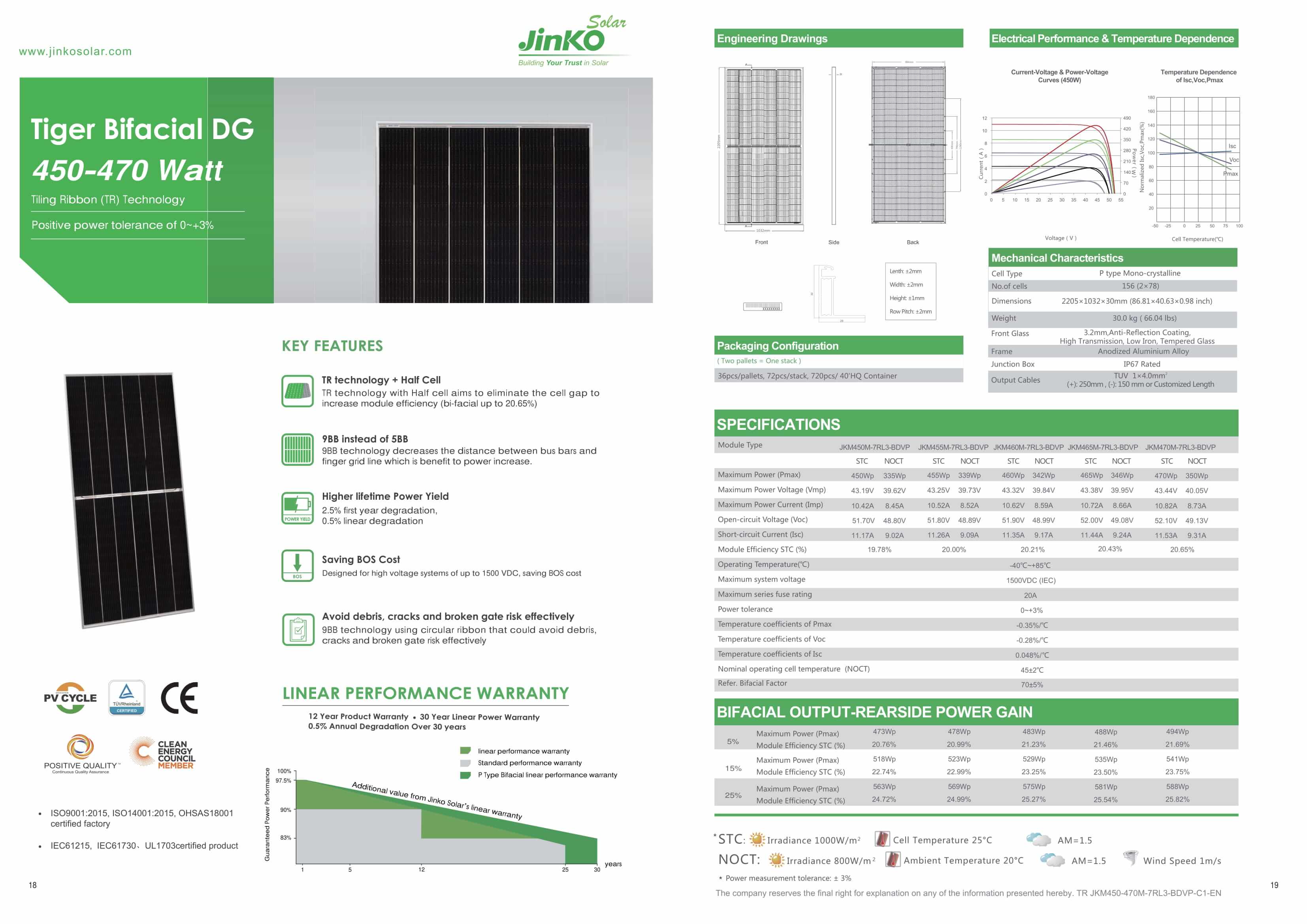 Tấm Pin Jinko 450w JKM450M-7RL3 được Jinko Solar - một trong những thương hiệu pin mặt trời đứng đầu thế giới nghiên cứu tỉ mỉ và trau chuốt trước khi sản xuất và ra mắt trên thị trường. Để nhận được sự tín nhiệm như ngày nay, đó là cả một quá trình nỗ lực, trải qua nhiều những bài test khó khăn, Jinko đã thuyết phục người dùng thành công khi đáp ứng được tiêu chuẩn tiêu dùng quốc tế.