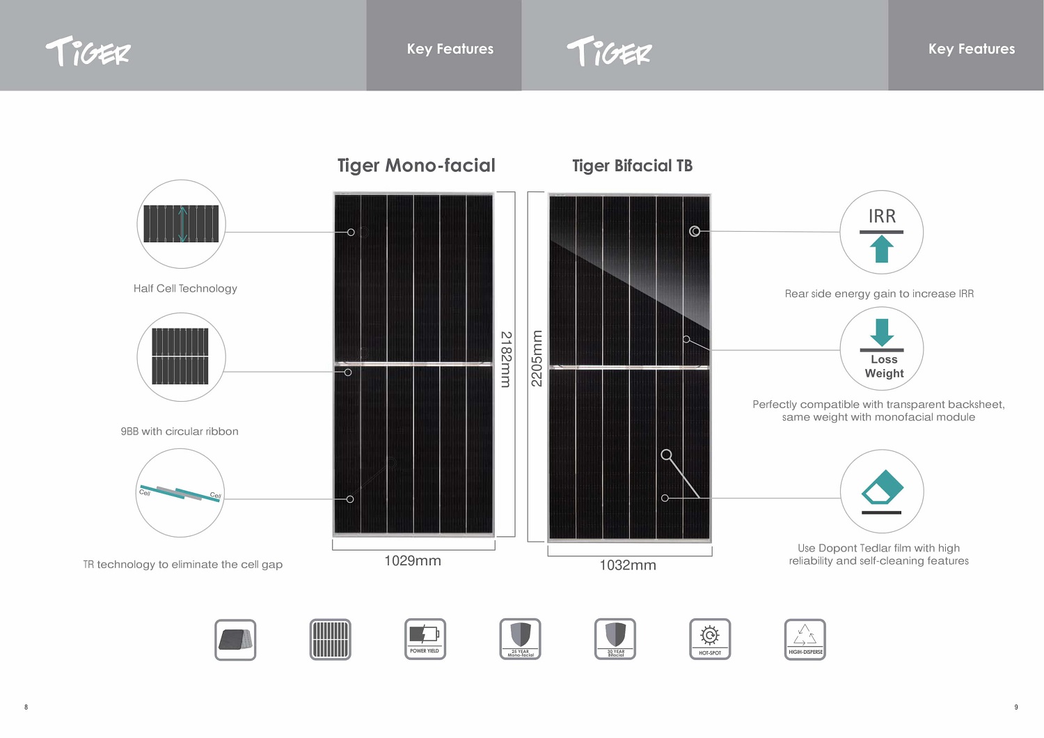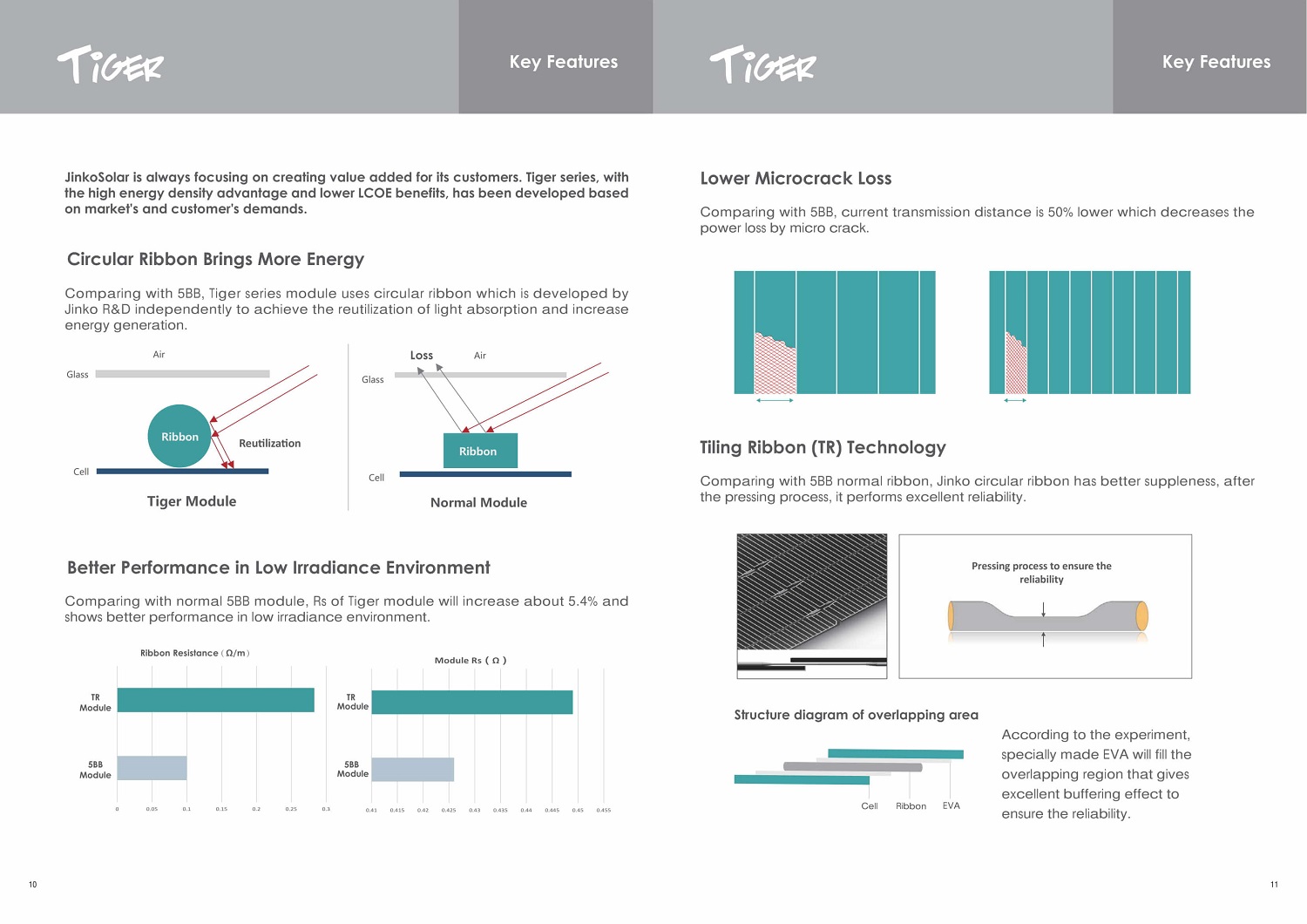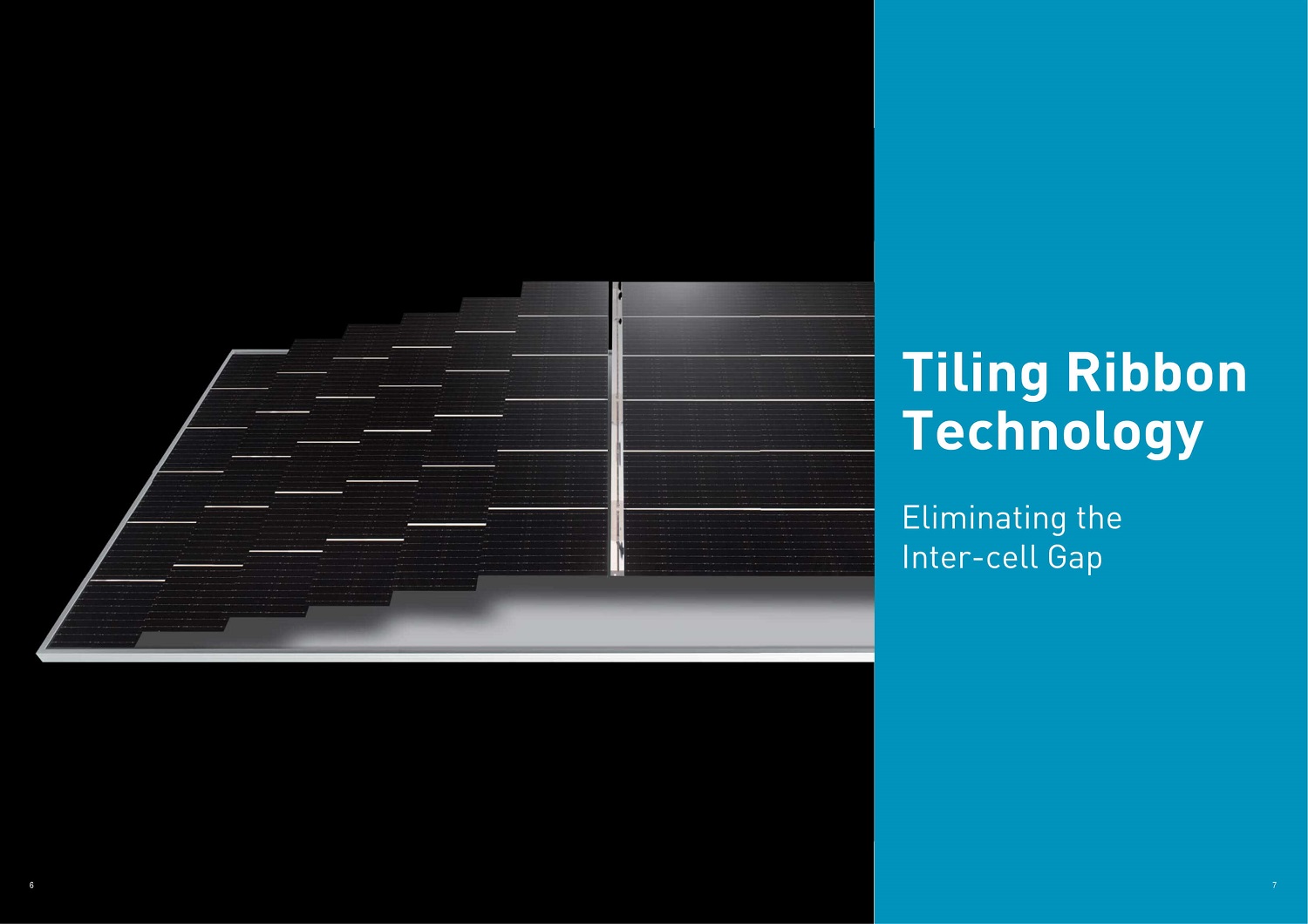 - Đi đầu là công nghệ Tiling Ribbon: làm tăng hiệu suất tấm pin bằng phương pháp loại bỏ khoảng trống giữa các Cells.