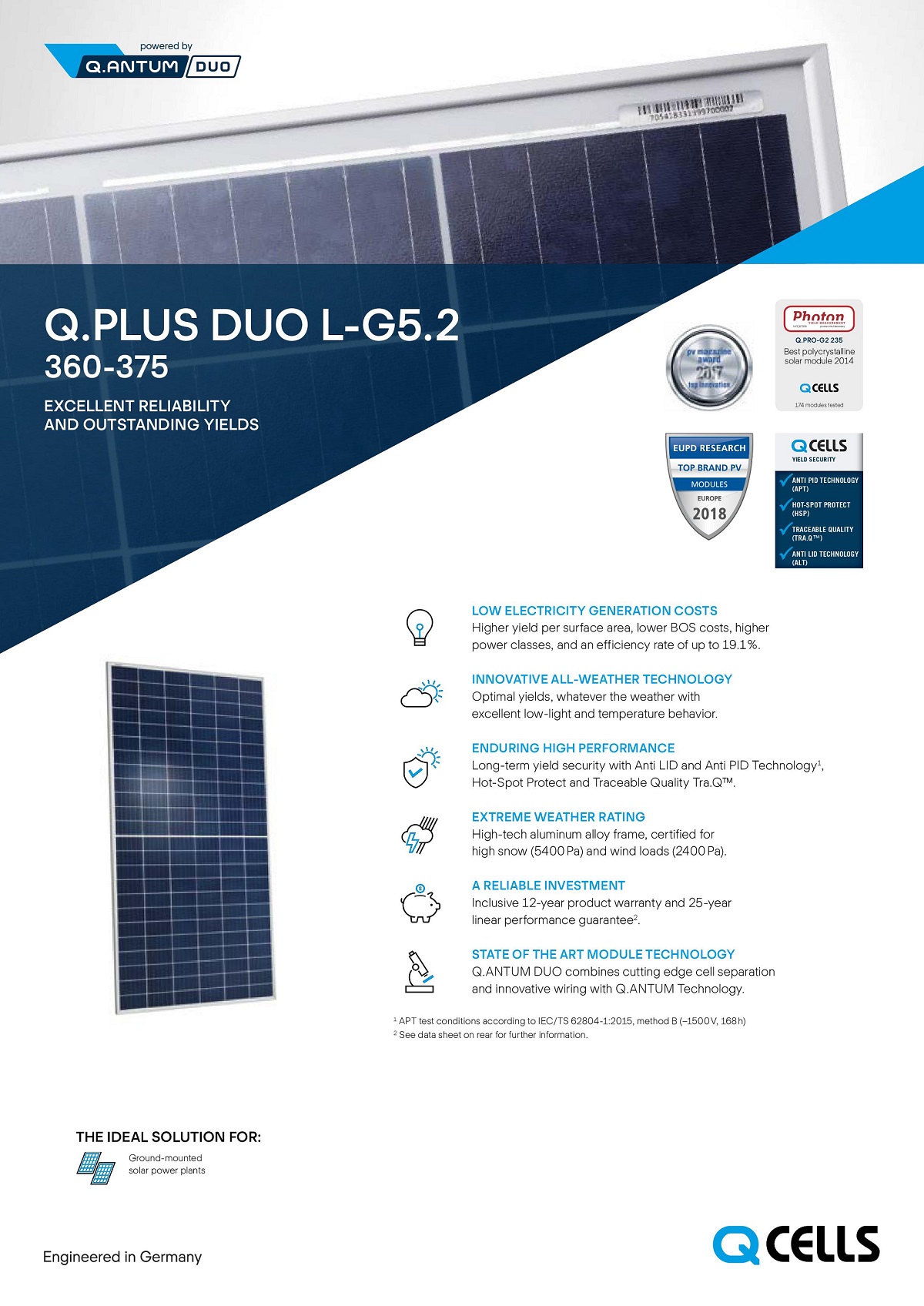 Thông tin sản phẩm tấm pin mặt trời QCells Q.Plus Duo L-G5.2 365 (Qcells 365)