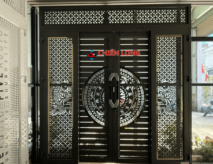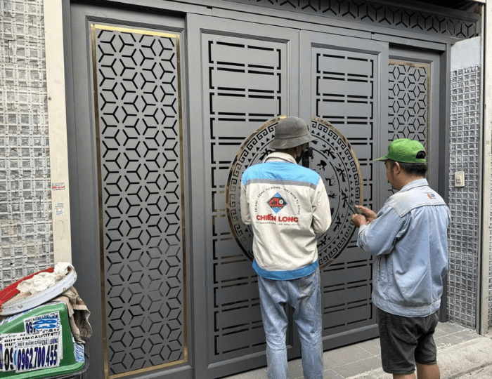 - Cửa trượt quay sắt CNC: nổi bật với hoa văn tinh xảo, độ bền cao, khả năng chống gỉ và chống oxy hóa tốt. Phù hợp với những gia chủ muốn tạo điểm nhấn sang trọng cho mặt tiền.